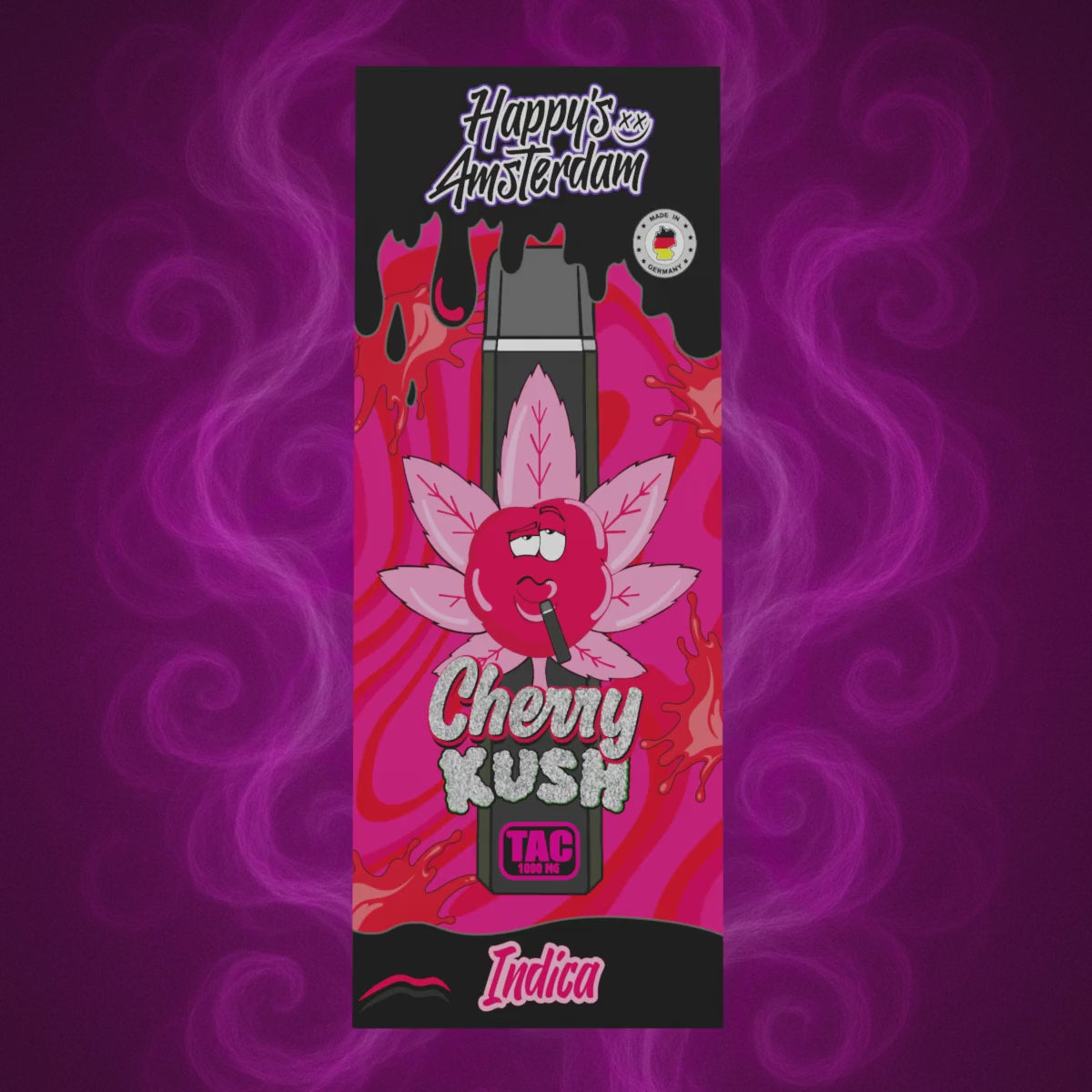 Entdecken Sie Entspannung auf einem neuen Level mit dem Premium Gerät mit Cherry Kush Geschmack von Happy's Amsterdam.